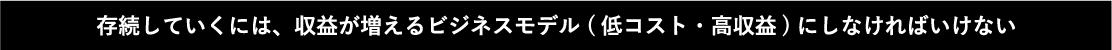 外部環境だけでなく、自社が運営するビジネスのモデルに利益が出しにくい大きな問題があると考えました。