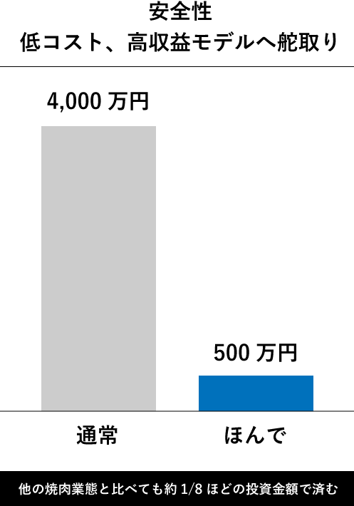 本部独自の仕入れルートと配送方法で食材を仕入れ、お肉はカット、サイドメニューは梱包された状態で納品されるため、アルバイトでも簡単に調理をすることができ、料理はお客様がするからです。